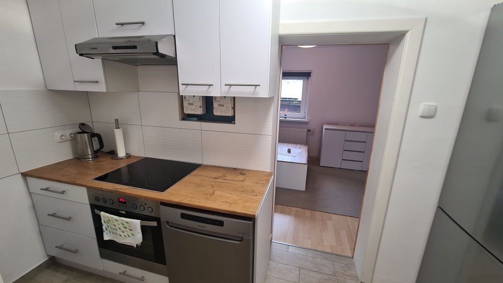 EG: Vorraum, Kochnische, Wohnzimmer, Schlafzimmer, Bad, separates WC.