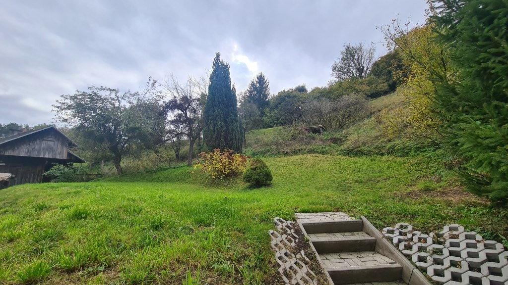 Grundstück: 1.886 m³ großteils steile nordhängige Lage. Kleiner ebener Gartenbereich und Parkplatz östlich des Gebäudes. Die Gesamtfläche ist als Bauland-Dorfgebiet bzw. teilweise als Bauland-Wohngebiet gewidmet. Wegservitut für den westlich angrenzenden Nachbarn führt zwischen Wohnhaus und Wirtschaftsgebäude.